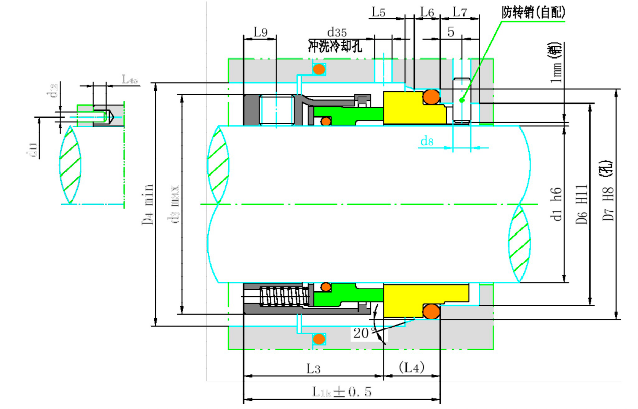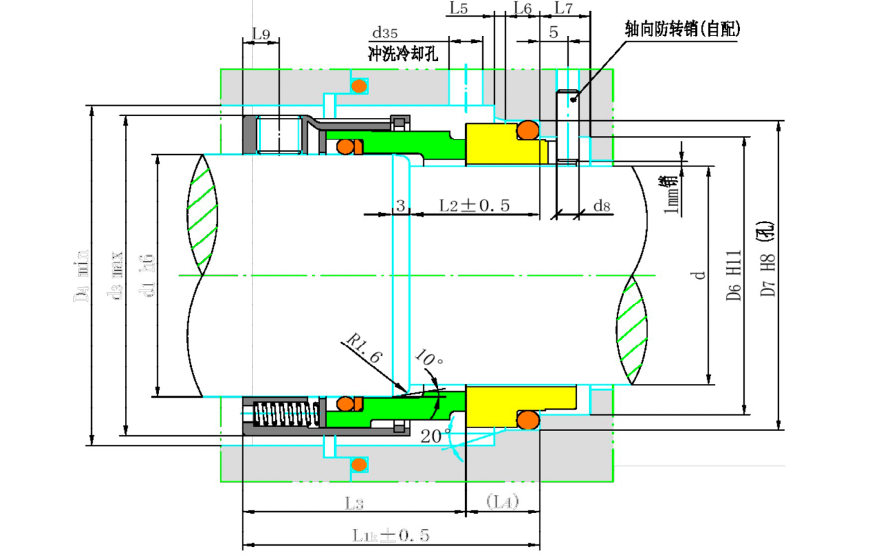 Structural Features: Single end, multiple springs, unbalanced (58U and 59U) and balanced (58B and 59B) types, suitable for any rotation direction, and driven by a drive sleeve. These mechanical seals feature a compact structure, short axial dimensions, and balanced sealing face load. They can serve as complete replacements for John Crane type 58B, 58U, 59B, 59U, and other similar models.