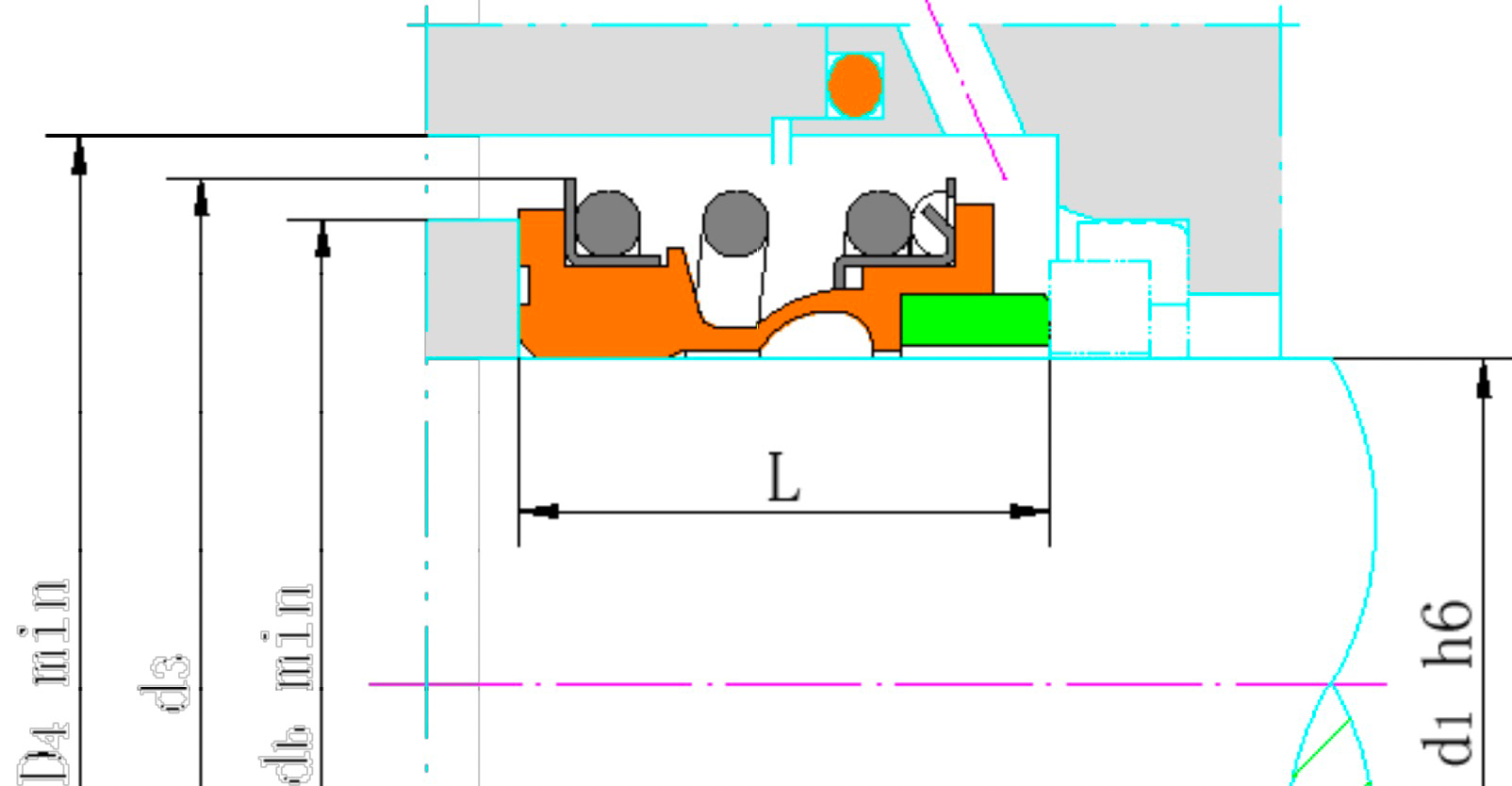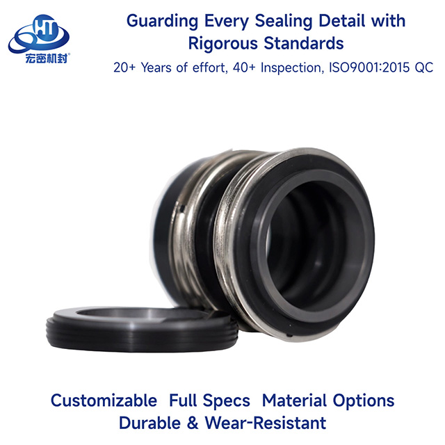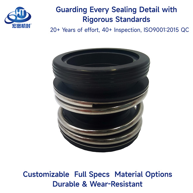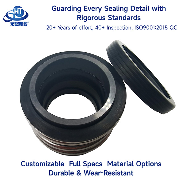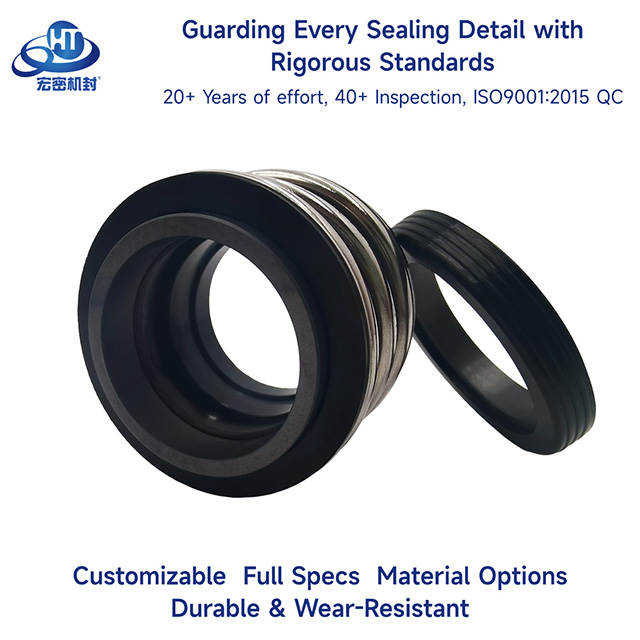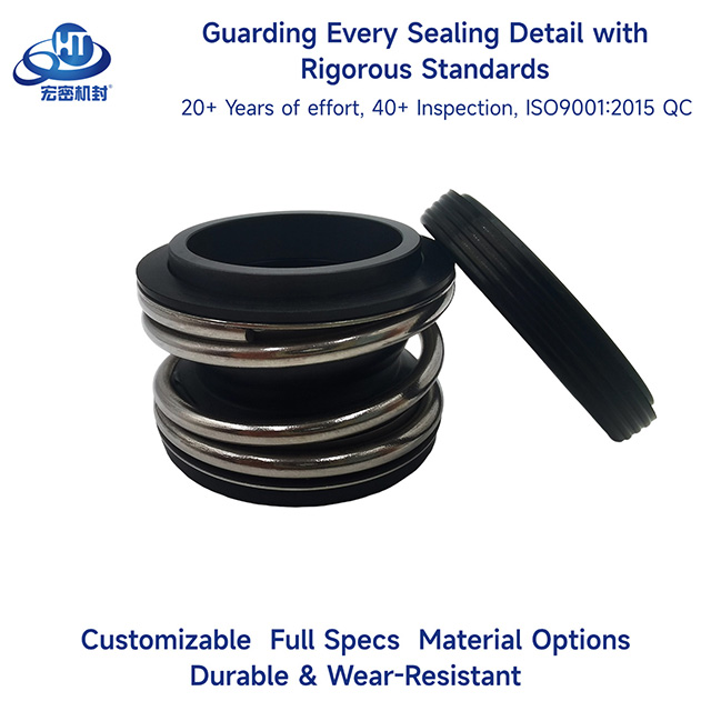 Structural Features: Single seal, unbalanced type, bidirectional rotation, bellows structure, bellows-driven mechanical seal. This seal features a compact design, excellent compatibility, and easy installation. The bellows provide a counterforce against pressure to prevent collapse and wrinkling. The bellows and spring work together to apply compensating force to the sealing faces. The rubber bellows design prevents axial movement, thereby enhancing the floating capability of the rotating ring.